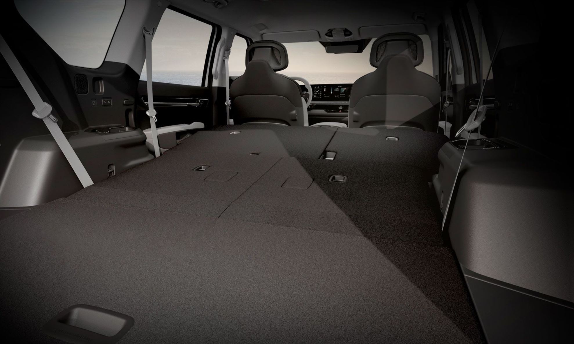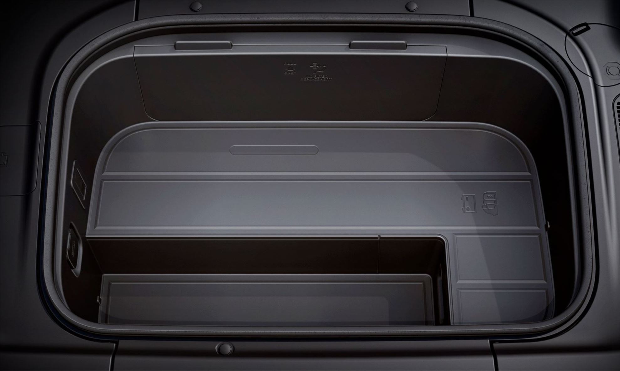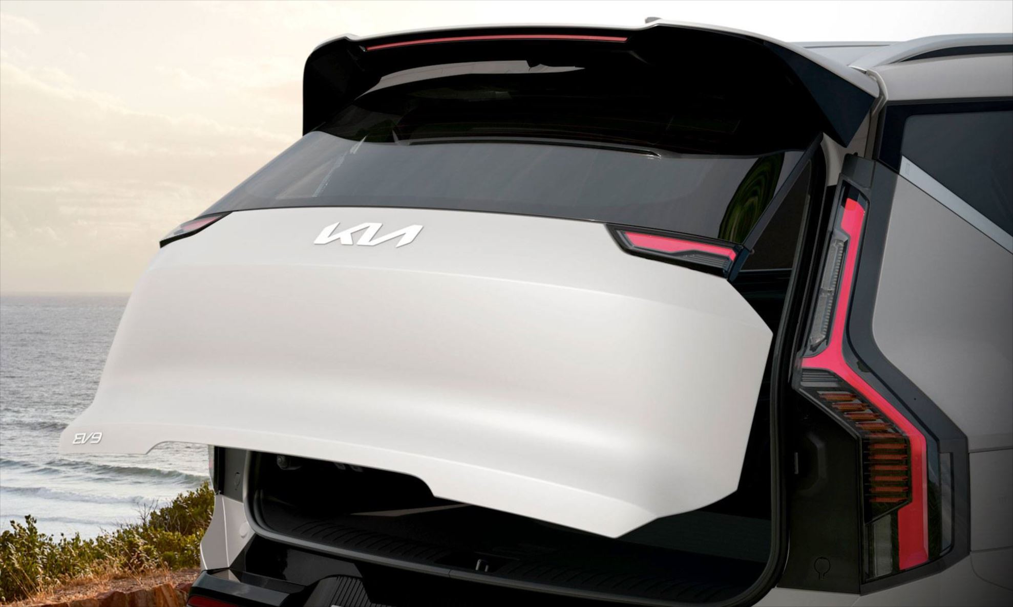 Um compartimento dianteiro de 52 litros (ou até 20 kg) é oferecido no Kia EV9 como um espaço adicional para porta-objetos sob o capô, que possui abertura por meio da chave Smart Key, assistida por amortecedores.